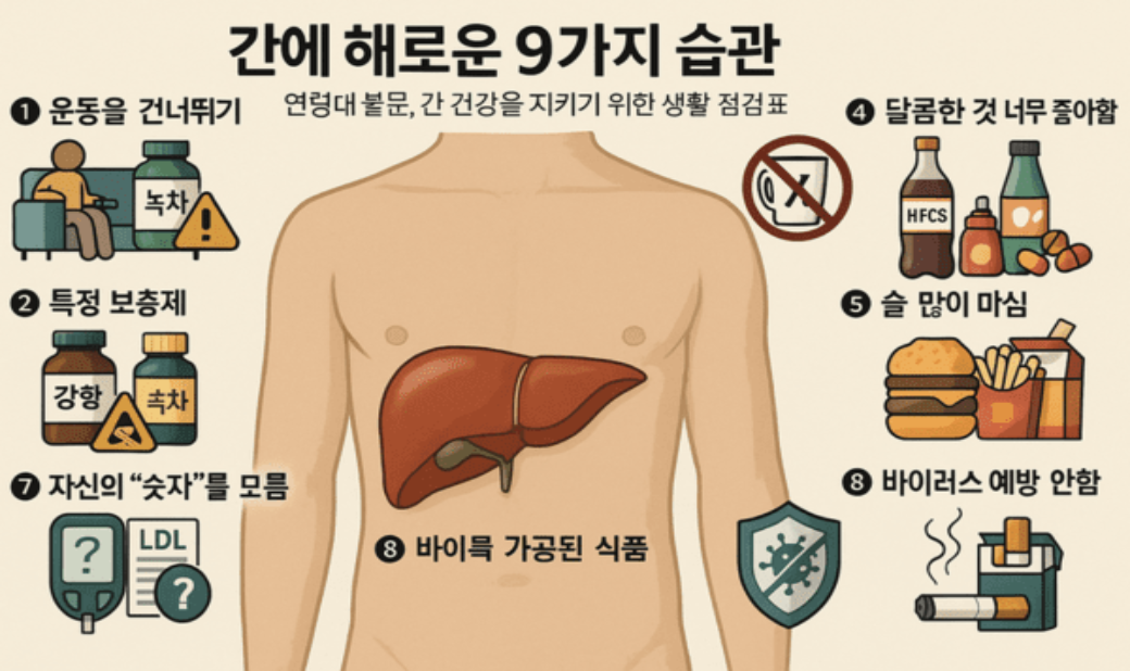아래 표는 간 건강을 위한 추천 습관과 주의할 점을 요약한 것입니다.