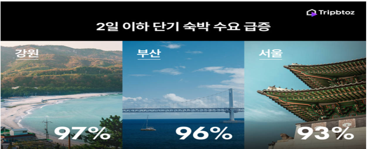 이러한 급증세는 코로나19 이후 회복된 여행 수요와 함께, 국내 여행에 대한 관심이 지속적으로 높아지고 있음을 보여줍니다.