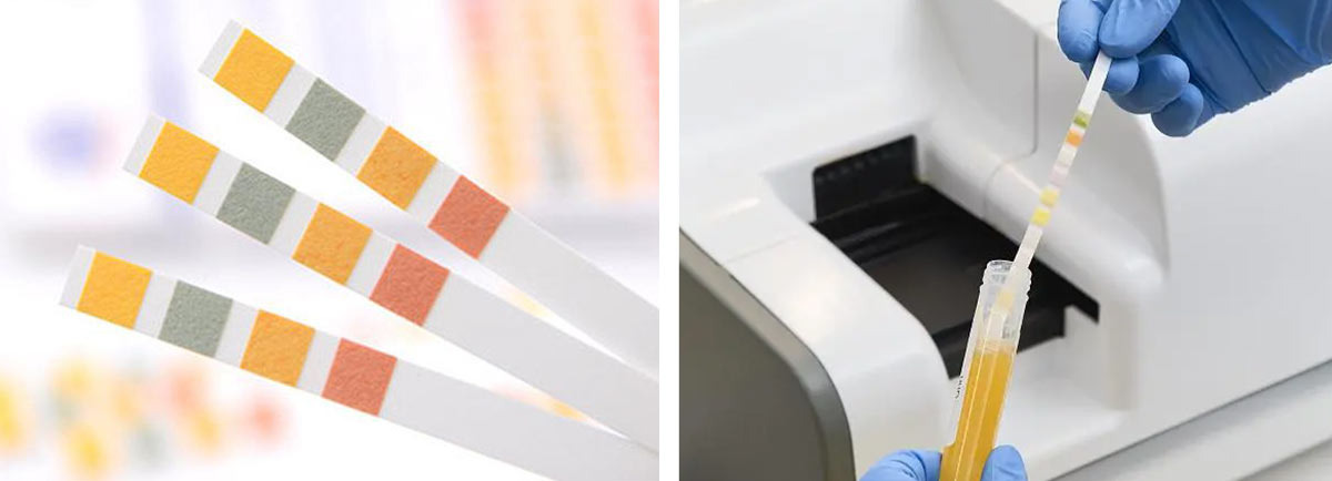 색 변화를 관찰할 때는 제품과 함께 제공되는 비색표와 비교합니다. 육안으로 판단하거나 전용 판독기를 사용할 수 있는데, 색조가 균일하지 않다면 가장 진한 색으로 판독하는 것이 원칙입니다. 만약 판독이 어렵다면 무리하지 말고 병원을 방문하여 전문가의 도움을 받으시는 것이 좋습니다.