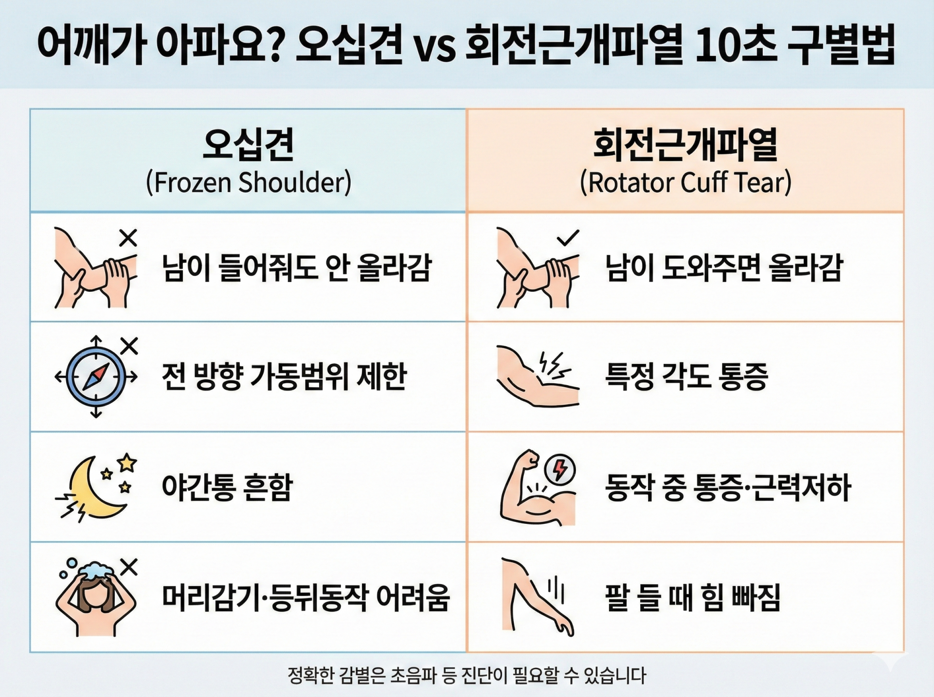 🔍 오십견 vs 회전근개 파열, 정확히 구분하기