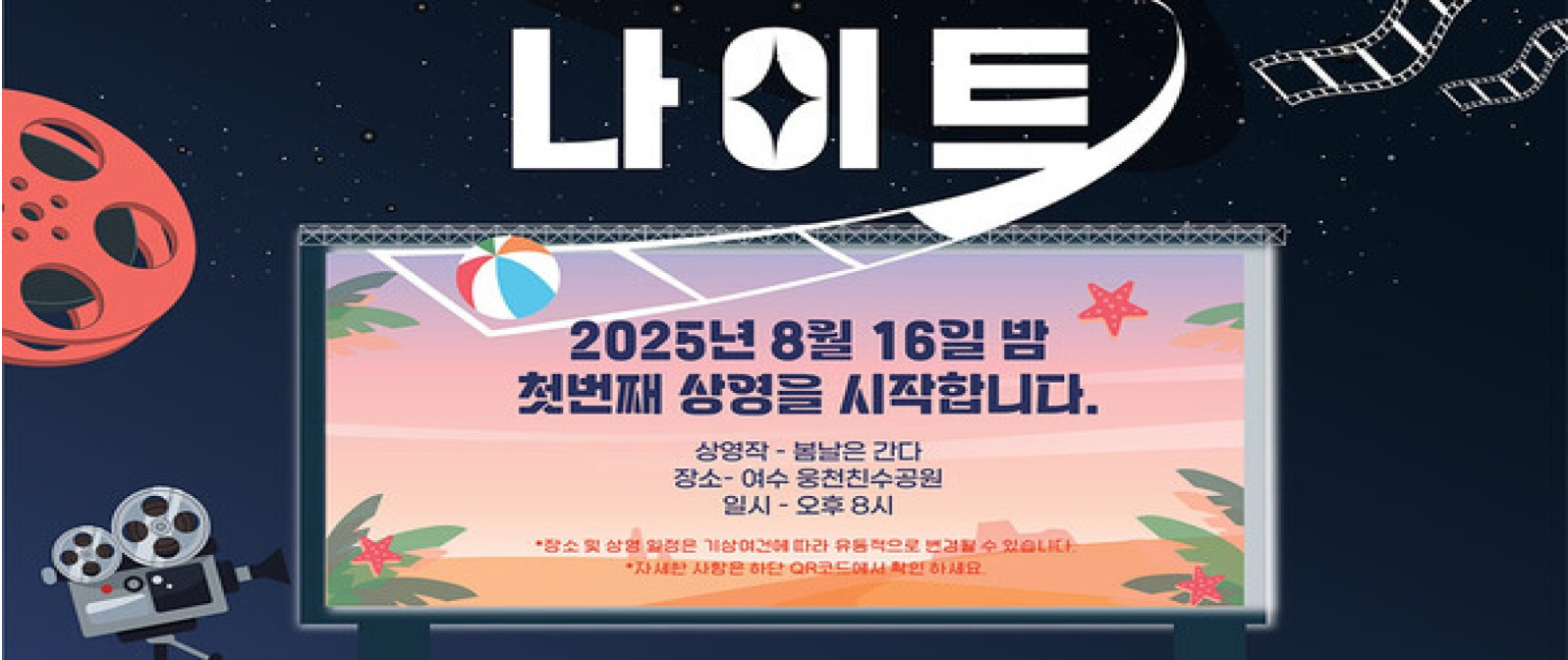 여수시는 2025년 ‘야간관광 특화 도시 조성사업’의 일환으로 ‘동백 무비 나이트’라는 완전히 새로운 콘텐츠를 기획해, 지역민과 관광객 모두가 여수의 매력을 색다르게 느낄 수 있는 특별한 밤을 선사합니다.