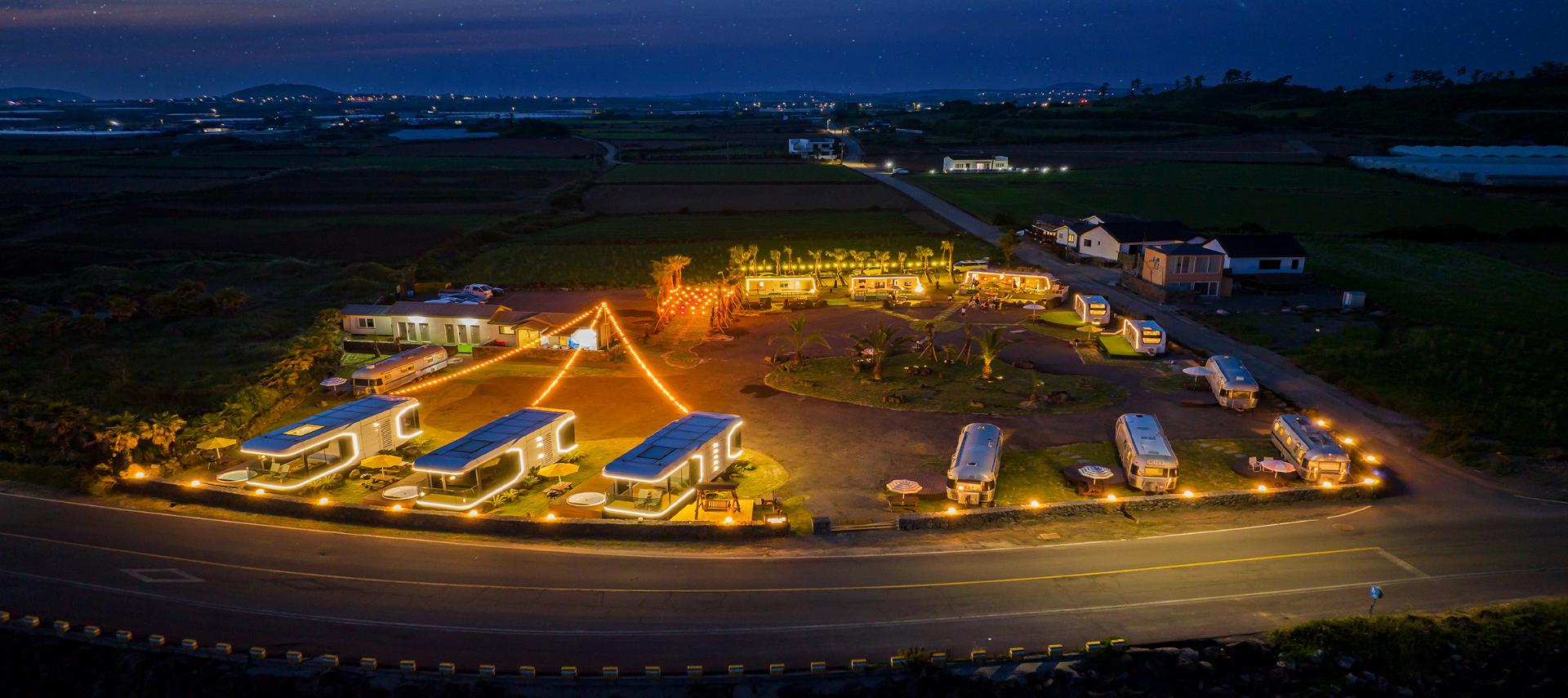1. 제주 코티지 캠핑 서귀포 산방산 근방, 고급 글램핑·프라이빗 독채형. 자쿠지·전용 샤워실·최신 캠핑용품 제공.2. 광이멀스테이풀빌라 & 글램핑 풀빌라와 결합한 글램핑, 가족단위 고객에 적합.