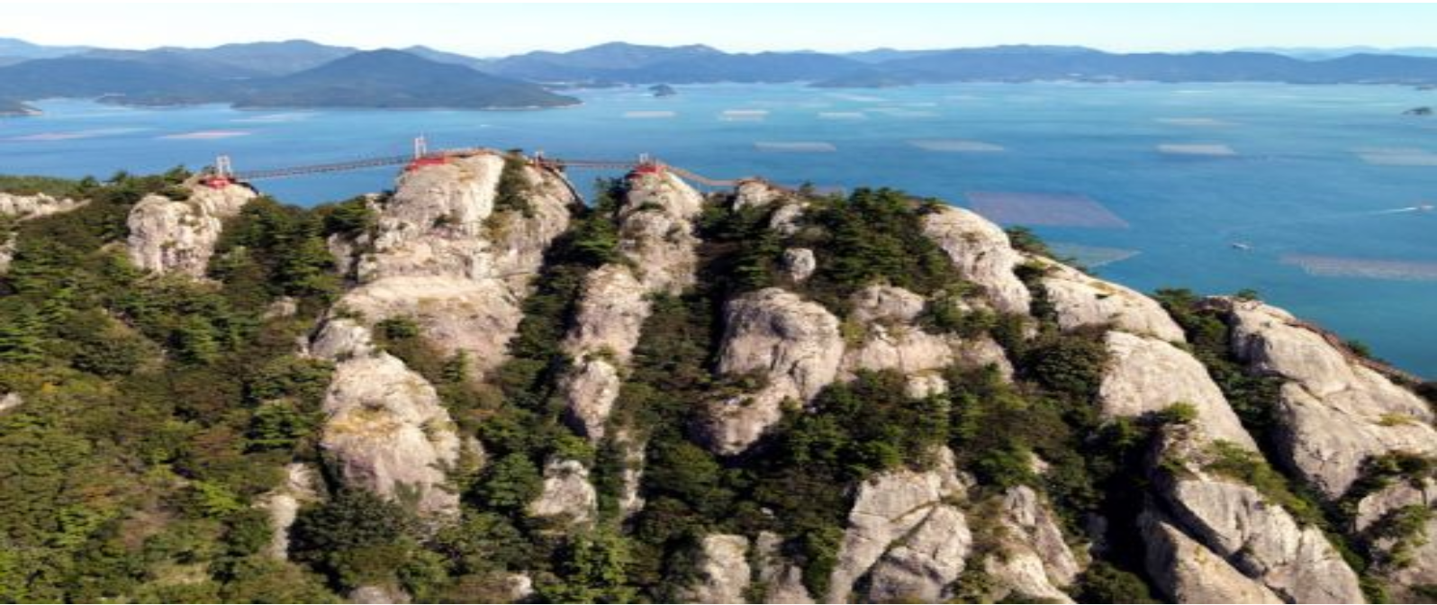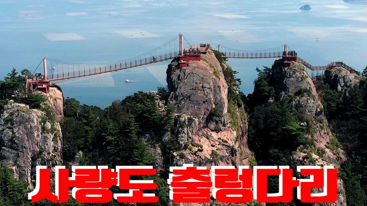 사량도에서 가장 잘 알려진 명소인 옥녀봉(해발 303m)에서 연결된 출렁다리는 39m와 22.2m 길이의 두 구간으로 구성되어 있습니다. 다리 위에서 느끼는 흔들림과 함께 펼쳐지는 바다 전망은 아찔하면서도 황홀한 경험을 선사합니다.